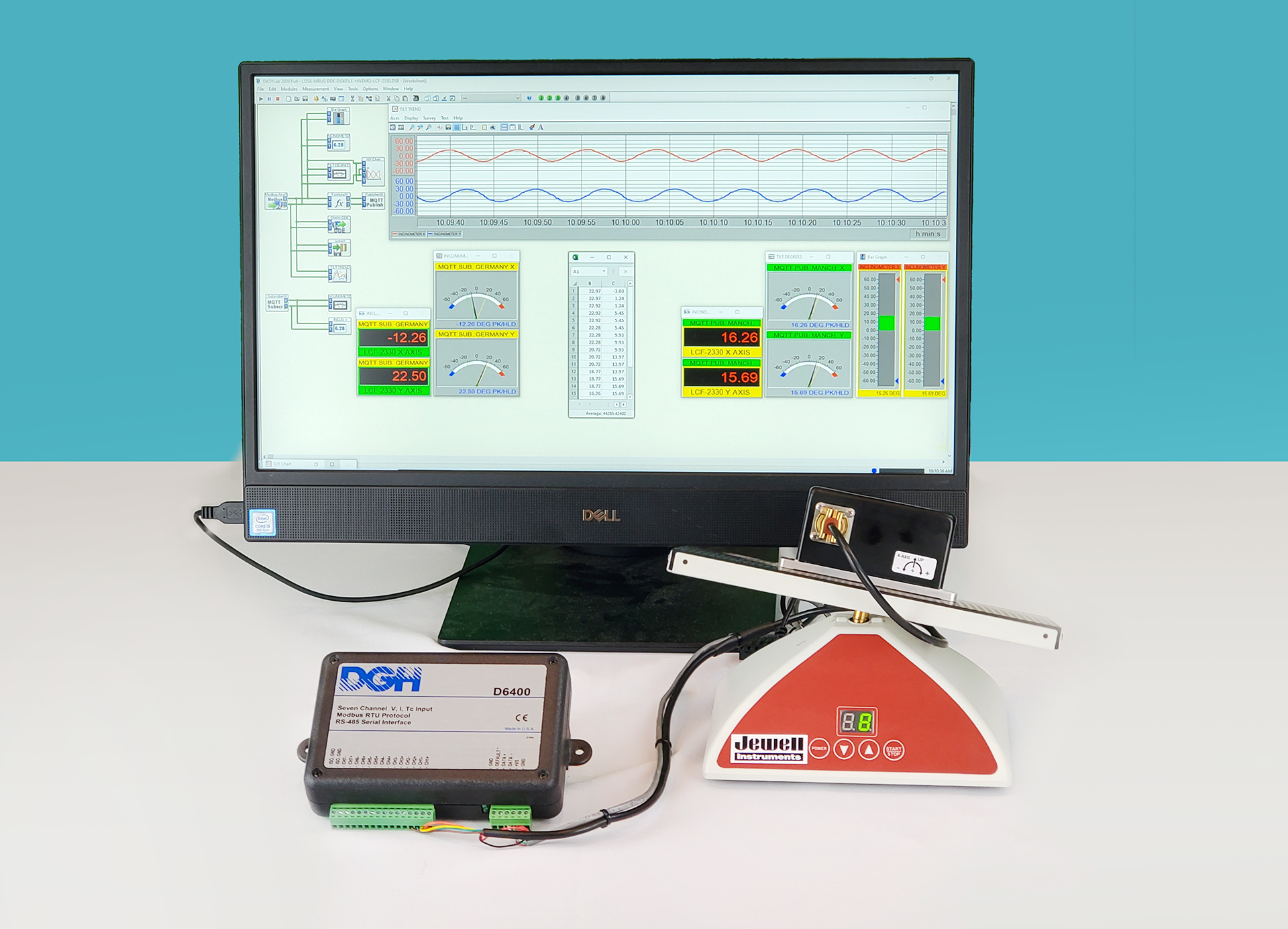 In a 4-minute demo video, Jewell and DGH take you on a tour of a precision tilt monitoring system using a Jewell Instruments LCF-2330 dual-axis inclinometer and a DGH D6400 series data acquisition module. In conjunction, we use a PC-based software called DASYLab 2020 to display data and transfers it to a cloud-based MQTT server.