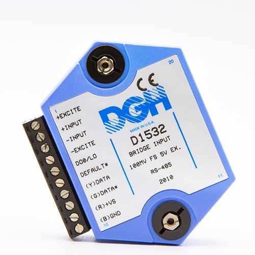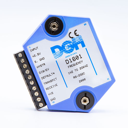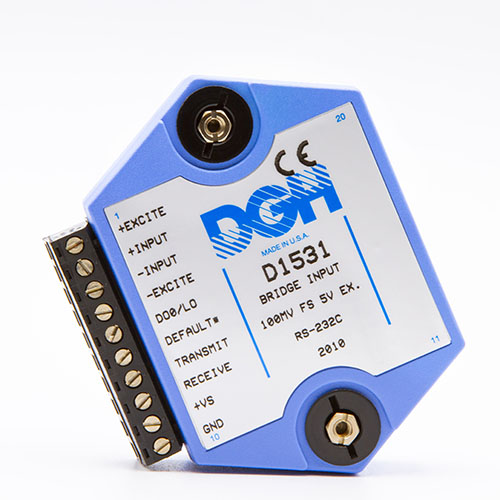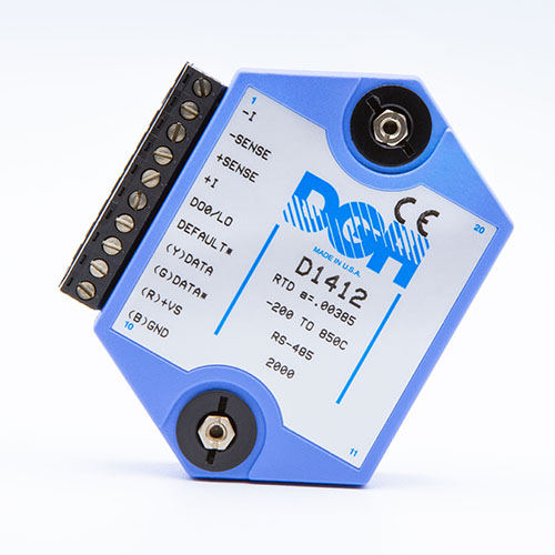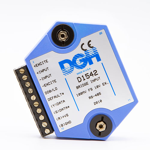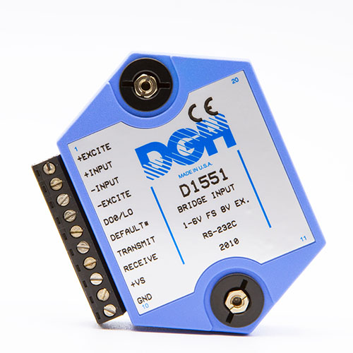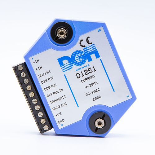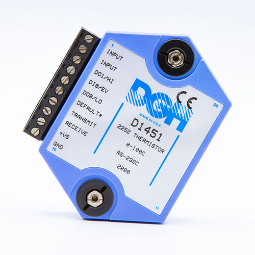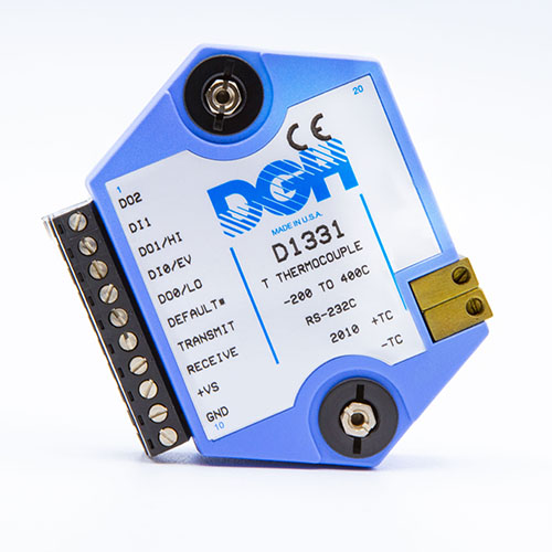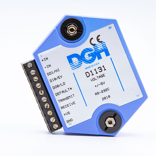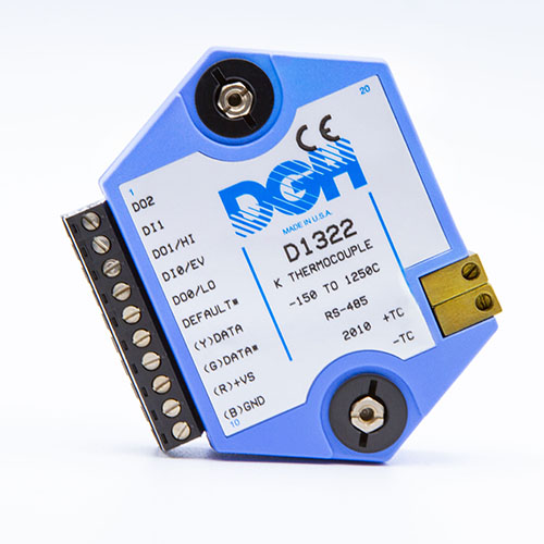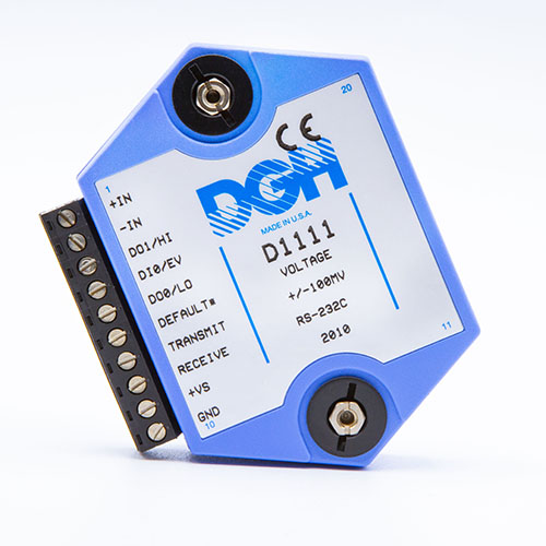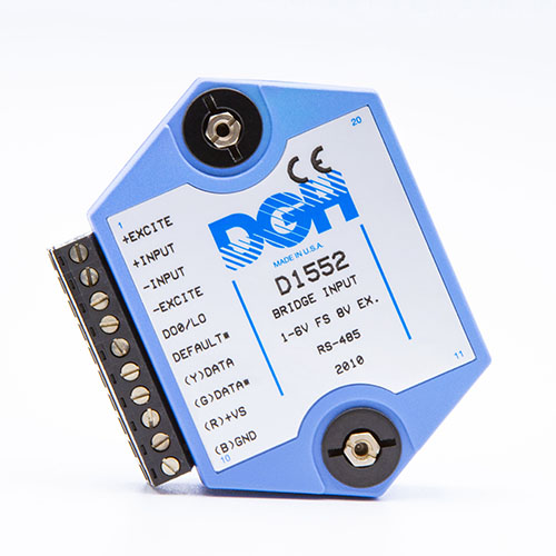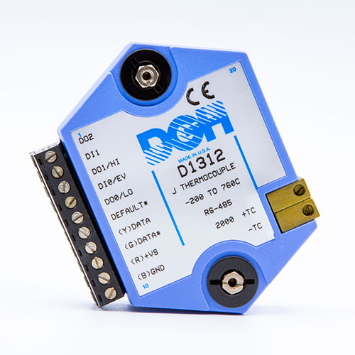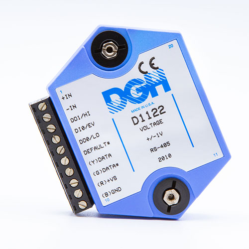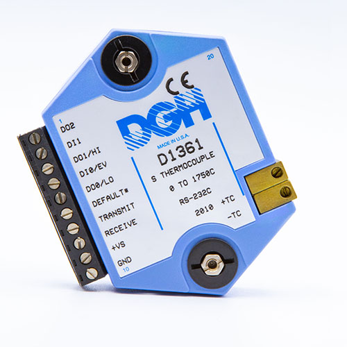 The D1000 analog input modules measure DC voltage and current, thermocouples, RTD’s, thermistors, load cells and frequency.  The analog input modules provide an isolated 15-bit measurement, analog to digital conversion and a linearized data output scaled into engineering units. The scaled data values are communicated using either RS-232 or RS-485.