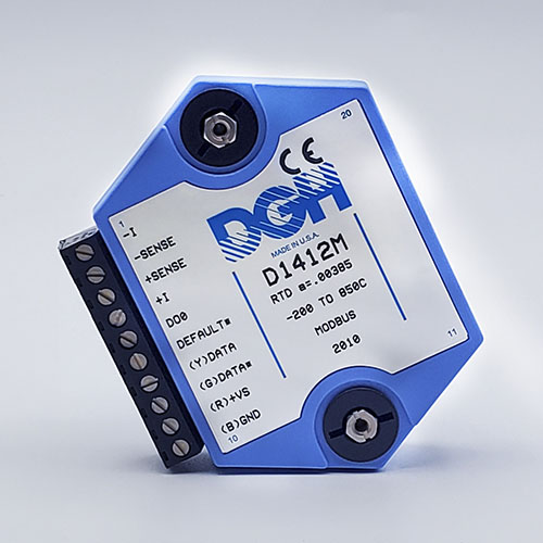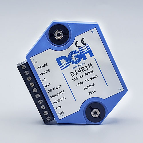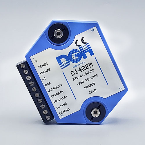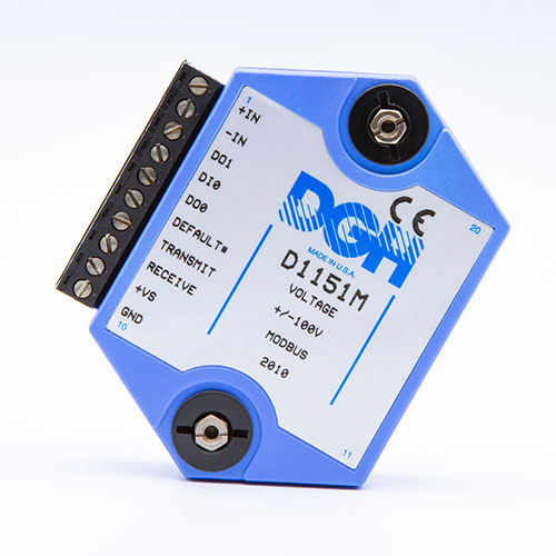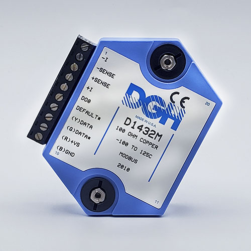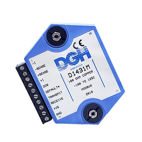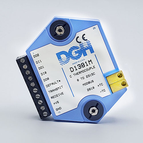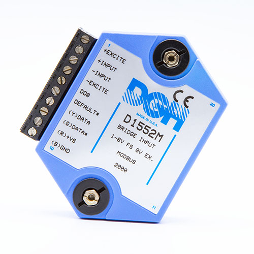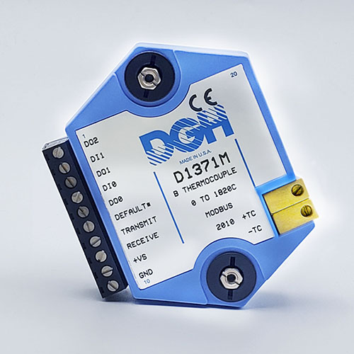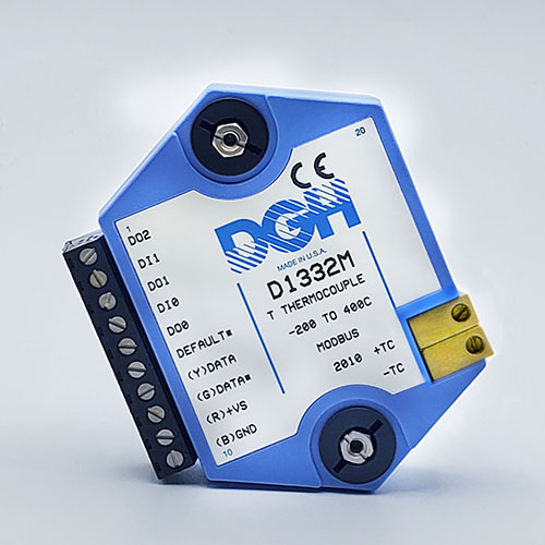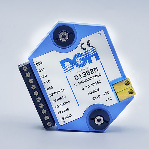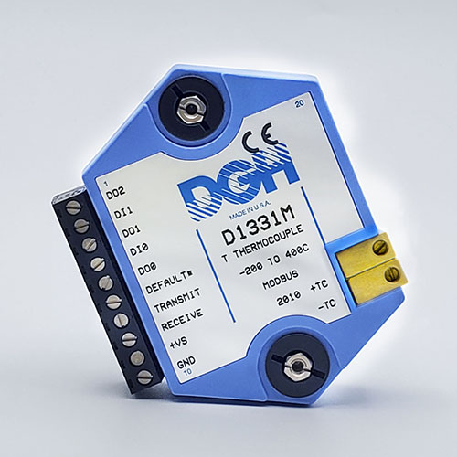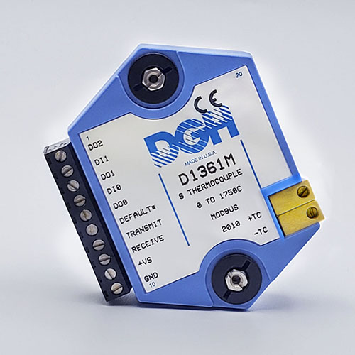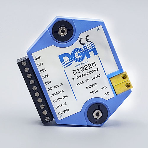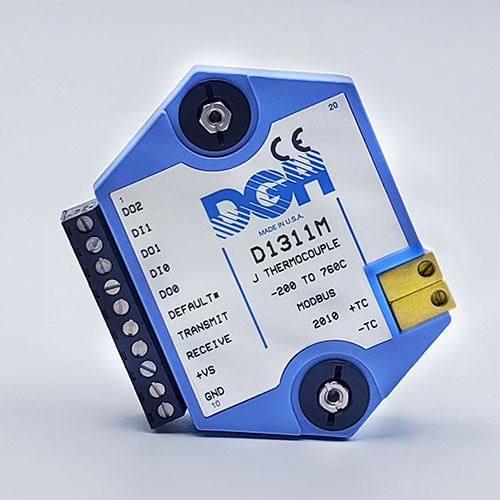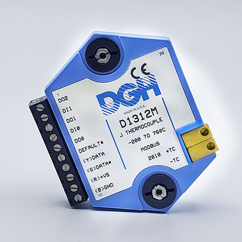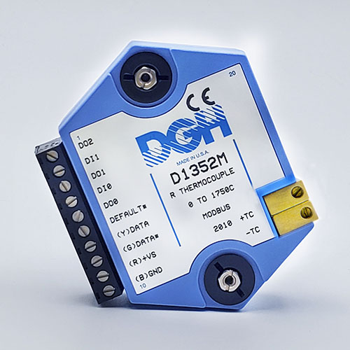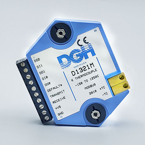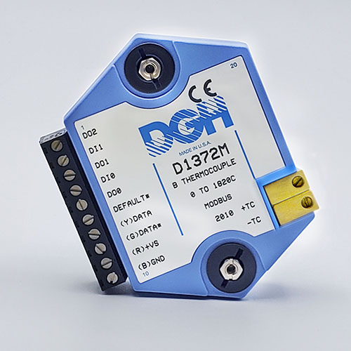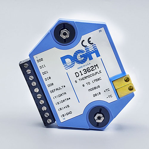 The D1000M analog input modules measure DC voltages and current such as 4-20mA, thermocouples, RTD’s, thermistors, load cells and frequency. Each module provides an isolated 15-bit measurement, analog to digital conversion and a linearized data output. The data values are communicated to a host computer using the Modbus RTU serial protocol via an RS-232 or RS-485 serial port.