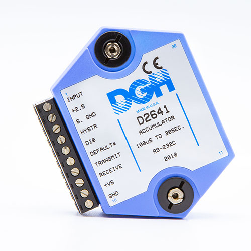 The D2600 series programmable frequency input modules include user-selectable scaling of the ADC output data values to desired engineering units that match the application. See the Programming Supplement for more details and examples.