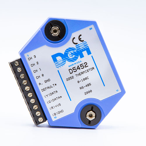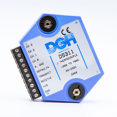 The D5000 four channel analog input modules are low-cost data acquisition modules that provide direct connection to four analog signals of the same type. The modules perform all signal conditioning, scaling, linearization and conversion to engineering units. The scaled data is communicated using either RS-232 or RS-485.