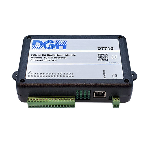 The digital inputs contain internal pull-up resistors on each bit for direct connection to switch contacts, relays, and annunciators. All digital input values are communicated to a host computer using the Modbus TCP ethernet protocol. Click on the data sheet and user’s manual links below for more details.