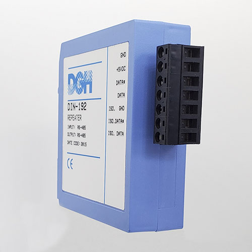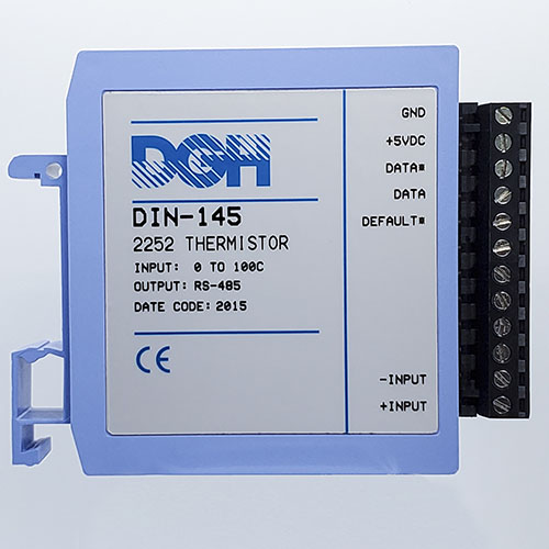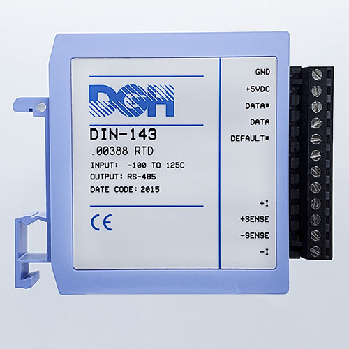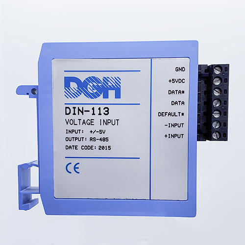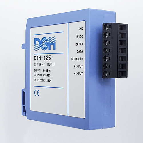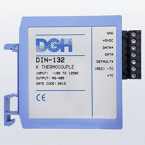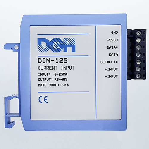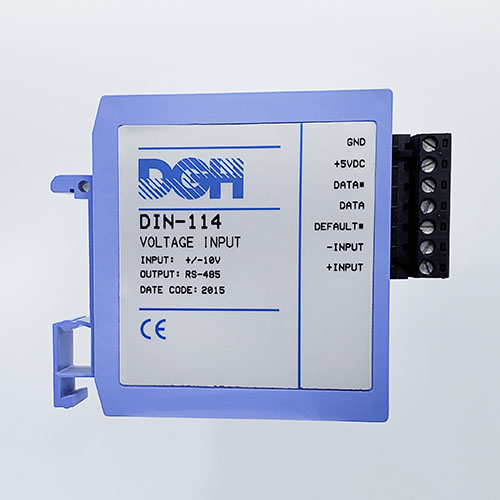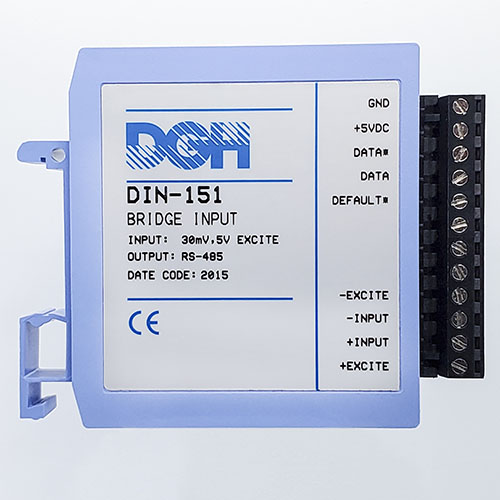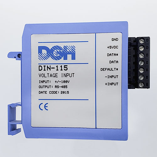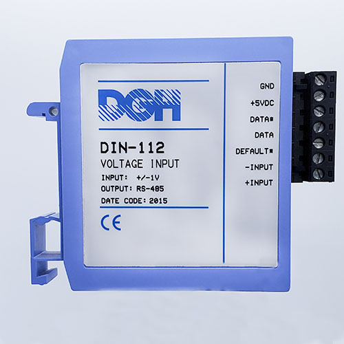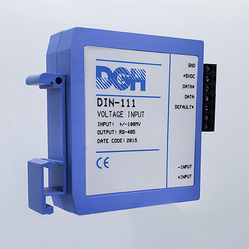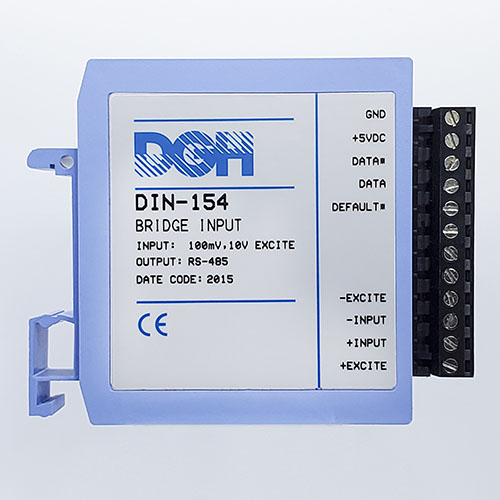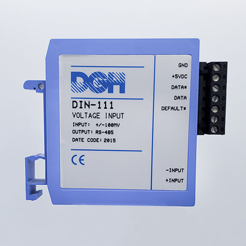The DIN-100 analog input modules measure DC voltages, 4-20mA, temperature sensors, load cells and frequency. The analog input modules provide an isolated 15-bit measurement, analog to digital conversion and a linearized data output. The data values are scaled as 16-bit unsigned integer values that represent a percentage of the full scale input range. The values are read using the Modbus RTU serial protocol through an RS-485 serial port.