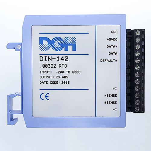 The DIN-100 series include discrete digital input and output modules for sensing contact closures and controlling annunciators or solid-state relays. The digital outputs can be pulled up to +30Vdc and sink up to 100mA without damage. The discrete digital inputs can accept +/-30Vdc signals without damage. The discrete switching levels are <+1Vdc = logic “0”, >+3.5Vdc equals a Logic “1”.